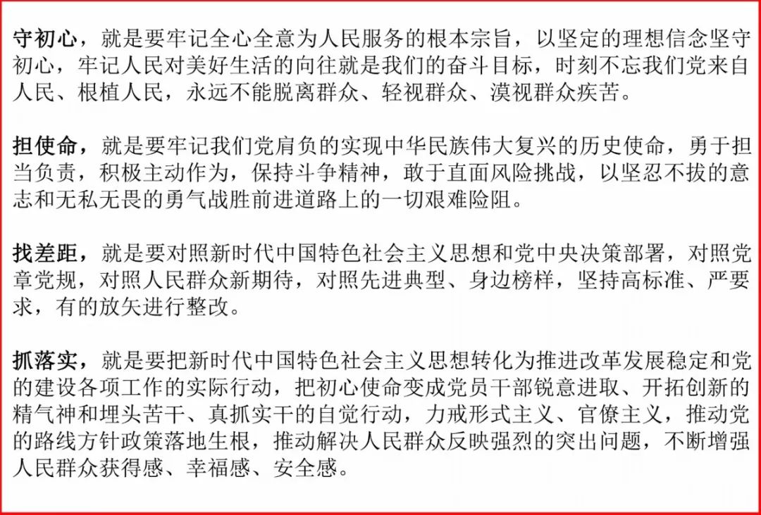 具體目標(biāo)是理論學(xué)習(xí)有收獲、思想政治受洗禮、干事創(chuàng)業(yè)敢擔(dān)當(dāng)、為民服務(wù)解難題、清正廉潔作表率。