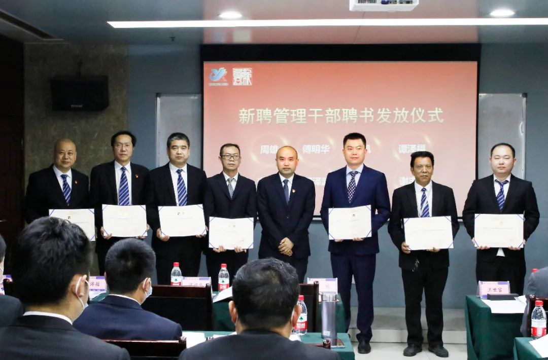 集團公司監(jiān)事會主席王世富宣讀了集團公司董事長、監(jiān)事會主席及中層以上管理干部的聘任文件;經(jīng)營班子成員向受聘的23名中層以上管理干部頒發(fā)了聘書。
