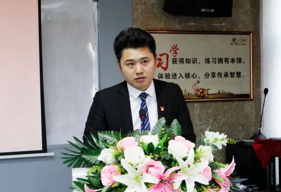 集團公司總經(jīng)理助理兼營銷總監(jiān)的郭澤武、鋁裝飾事業(yè)部鈑金車間副經(jīng)理傅熊,作為新聘管理干部代表在會上作了任職表態(tài)發(fā)言。