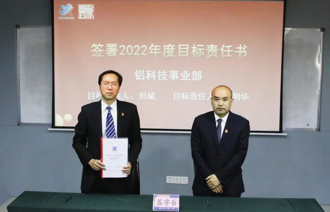 鋁科技事業(yè)部總經(jīng)理傅明華宣布了《2022年集團公司八大領導小組分工的決定》。集團公司董事長劉斌分別向八大工作小組進行了集體授牌。劉董殷切希望八大領導小組組長帶領全體成員,全方位把專項工作做細做深做透,全面提升公司專項管理水平,為公司三五規(guī)劃建功立業(yè)。