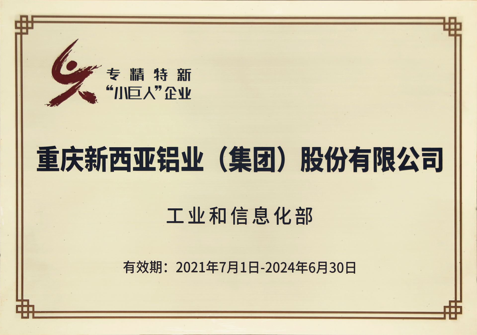 近日,新西亞鋁業(yè)獲工業(yè)和信息化部專(zhuān)精特新“小巨人”企業(yè)授牌(全國(guó)第三批)。