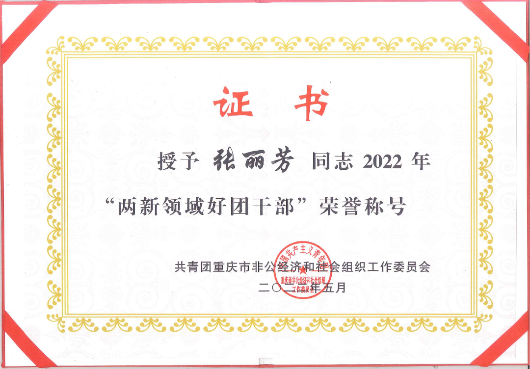為充分發(fā)揮先進(jìn)典型示范引領(lǐng)作用,喜迎黨的二十大勝利召開,慶祝中國共產(chǎn)主義青年團(tuán)成立100周年,重慶市非公經(jīng)濟(jì)和社會組織團(tuán)工委開展了2022年“兩新領(lǐng)域五四紅旗團(tuán)委(團(tuán)支部)”“兩新領(lǐng)域好團(tuán)員”“兩新領(lǐng)域好團(tuán)干部”選樹工作。重慶新西亞鋁業(yè)(集團(tuán))股份有限公司團(tuán)支部書記張麗芳同志榮獲重慶市“兩新領(lǐng)域好團(tuán)干部”榮譽(yù)稱號。