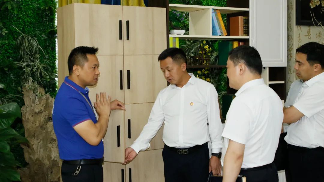 在集團(tuán)公司黨支部書記、董事長、總經(jīng)理劉斌的陪同下,沈總一行先后參觀了集團(tuán)公司鋁裝飾展廳、鋁家居展廳、黨群活動室、文化長廊等區(qū)域。