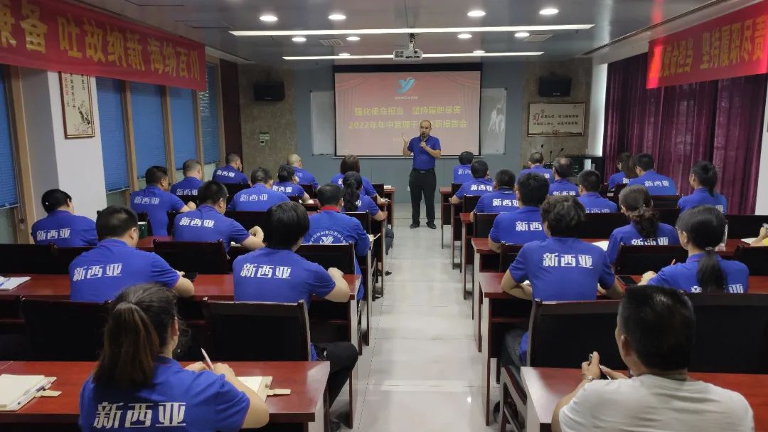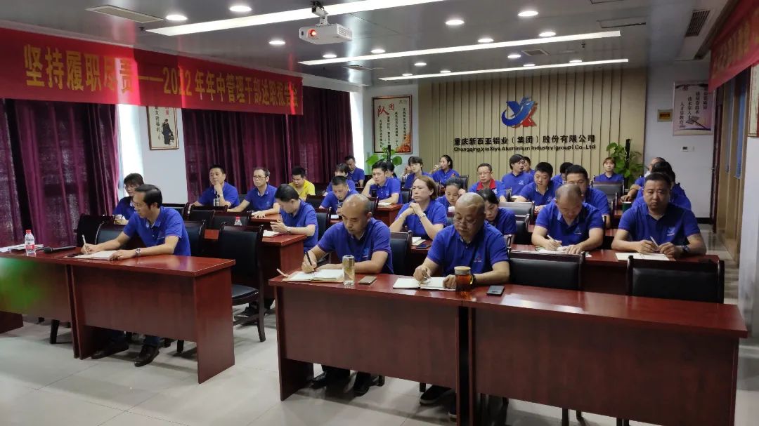 經(jīng)過精心組織與籌備,新西亞鋁業(yè)集團“強化使命擔當,堅持履職盡責”——2022年上半年管理干部述職會于7月5日下午在新西亞商學院如期召開,公司經(jīng)營班子成員、中高層管理干部以及員工代表共計50余名參加了會議,運營保障部經(jīng)理馮遠道主持會議。