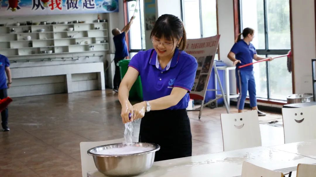 本次大掃除活動(dòng)以公司辦公樓、食堂、廠區(qū)公共區(qū)域?yàn)榍鍜咧攸c(diǎn)。大掃除期間,黨員干部充分發(fā)揮黨員先鋒模范作用,帶頭干,做表率,廣大積極分子、團(tuán)員青年、群眾齊上陣,大家熱情高漲、分工明確、積極配合,充分發(fā)揚(yáng)不怕苦、不怕累的精神,拿起抹布、掃帚、撮箕、拖把等工具,對(duì)積存垃圾、死角灰塵進(jìn)行了全面清理,對(duì)亂堆亂放、置物管理等進(jìn)行了整改,對(duì)門窗玻璃進(jìn)行了細(xì)致清潔。大家頂著炎炎烈日,干得熱火朝天,雖然汗流浹背但絲毫沒(méi)有影響參與勞動(dòng)的熱情。不到半天時(shí)間,把辦公區(qū)域、食堂及廠區(qū)公共區(qū)域的每一處都清掃得干凈整潔,煥然一新。