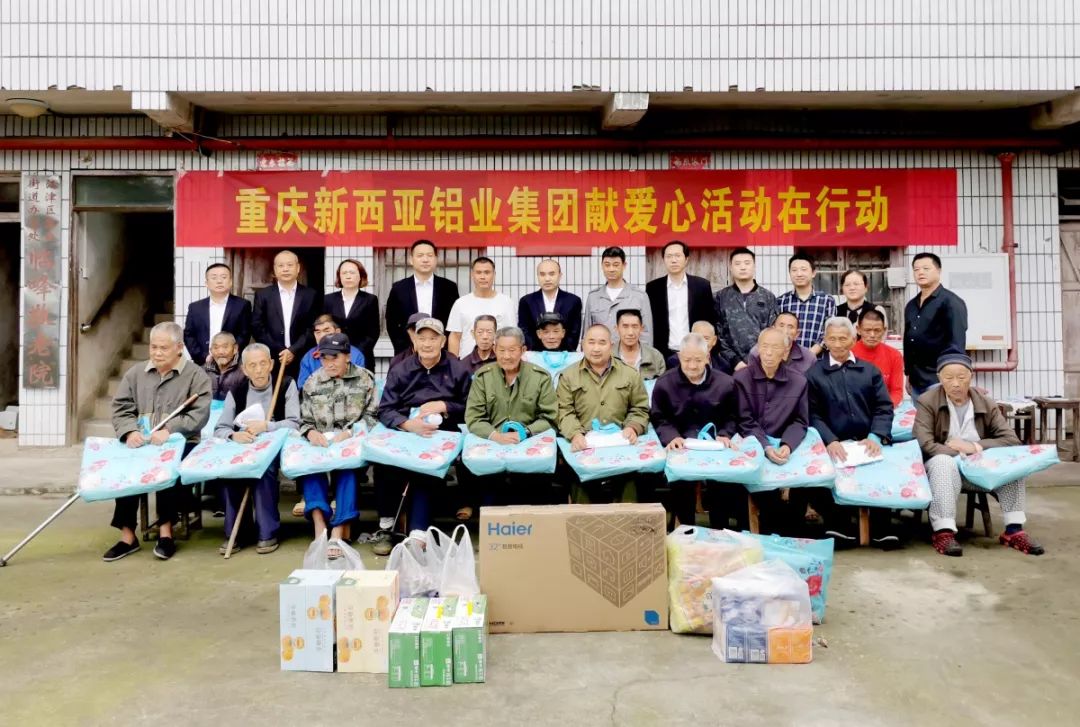 重慶新西亞鋁集團(tuán)總經(jīng)理劉斌表示:重慶新西亞鋁業(yè)集團(tuán)將把每年的“重陽(yáng)節(jié)”,定為向當(dāng)?shù)鼐蠢显豪先双I(xiàn)愛(ài)心的“新西亞愛(ài)心日”,通過(guò)持續(xù)獻(xiàn)愛(ài)心活動(dòng),傳遞正能量,形成“老有所養(yǎng)、老有所樂(lè)、老有所為”的良好和諧社會(huì)氛圍,為江津地區(qū)的老年人事業(yè)貢獻(xiàn)應(yīng)有的責(zé)任和力量。
