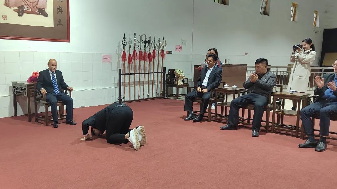 隨后,新西亞鋁業(yè)集團(tuán)董事長劉斌作為劉洋誠拜的師傅上臺(tái),正坐在拜師椅上,弟子劉洋行拜師禮,師傅劉斌還禮后,劉洋拿出拜師帖,高聲讀出了拜師之誠意,雙手高舉拜師帖敬呈給師傅劉斌,隨后呈上了拜師茶與鮮花,師傅劉斌高興地接過拜師茶與鮮花,為徒弟送上了美好的祝愿。