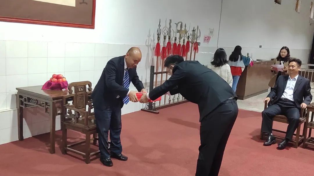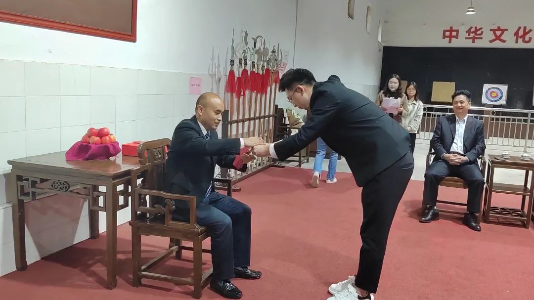 伴隨著悠悠的古典禮樂,拜師會(huì)在主持人熱情洋溢的講話中拉開帷幕,張書記從拜師禮儀、拜師初衷、拜師作用、拜師所為四方面對師傅劉斌、弟子劉洋情況作了詳細(xì)介紹,闡明了舉辦此項(xiàng)活動(dòng)的重要作用與意義。