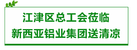 帶著黨和政府對新西亞鋁業(yè)全體員工的深情厚意,8月1日下午,江津區(qū)總工會羅玉珍主席親率區(qū)總工會、園區(qū)相關(guān)領(lǐng)導(dǎo),冒著高溫酷暑來到西亞公司生產(chǎn)現(xiàn)場,對高溫酷暑季節(jié)戰(zhàn)斗在生產(chǎn)一線的員工表示親切的慰問。