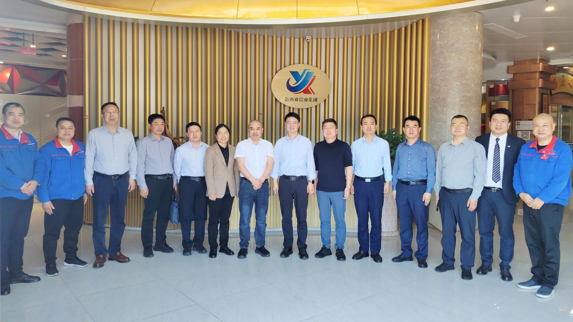 2025 年 3 月 26 日,千陽縣縣長張湛林、縣政協(xié)副主席岳云菊率領招商考察團,在重慶市陜西寶雞商會會長鄭肖等人的陪同下,蒞臨新西亞鋁業(yè)集團參觀交流。集團總經理劉斌及管理團隊以熱情洋溢的姿態(tài)迎接了張縣長一行,雙方共同開啟了一次意義非凡的產業(yè)協(xié)同探索之旅。