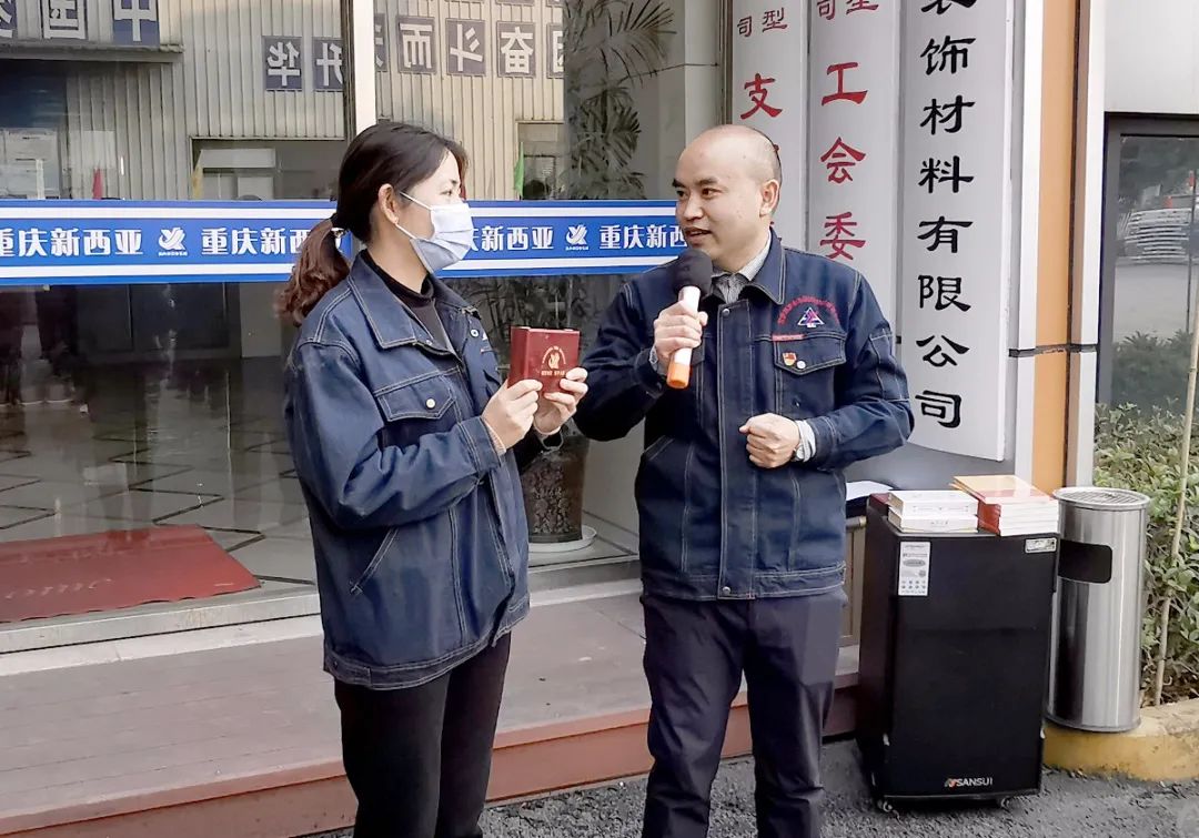 活動(dòng)現(xiàn)場(chǎng),劉斌總經(jīng)理通過(guò)贈(zèng)書(shū)等方式與現(xiàn)場(chǎng)員工進(jìn)行互動(dòng)交流,為員工送去新春開(kāi)工的美好祝愿,為整個(gè)開(kāi)工現(xiàn)場(chǎng)增添了融融的喜慶氛圍。