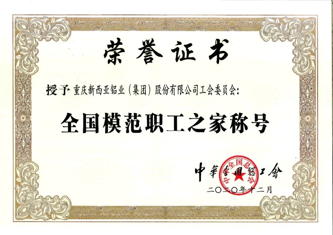 據(jù)悉,“全國(guó)模范職工之家”榮譽(yù)稱號(hào),由中華全國(guó)總工會(huì)設(shè)立,每五年評(píng)選一次,是全國(guó)工會(huì)系統(tǒng)表彰先進(jìn)集體的最高榮譽(yù),也是國(guó)家對(duì)基層工會(huì)工作的最高褒獎(jiǎng)。新西亞鋁業(yè)集團(tuán)工會(huì)是2021年江津區(qū)唯一獲得該項(xiàng)榮譽(yù)的單位。新西亞鋁業(yè)集團(tuán)工會(huì)將以此為新起點(diǎn),再接再厲,以飽滿的工作熱情、昂揚(yáng)的精神狀態(tài),切實(shí)做好員工服務(wù)工作,積極發(fā)揮好公司與員工的橋梁和紐帶作用,在不斷增強(qiáng)員工獲得感、認(rèn)同感、幸福感的同時(shí),為創(chuàng)行業(yè)標(biāo)桿、鑄民族品牌的新西亞鋁業(yè)集團(tuán)作出新的更大貢獻(xiàn)。