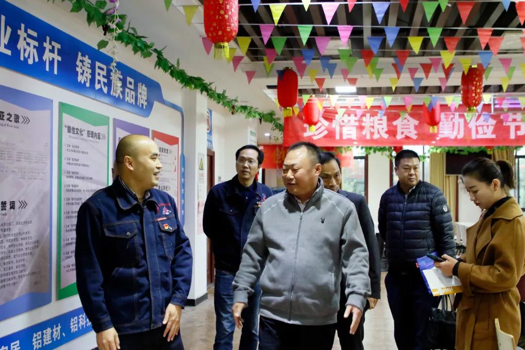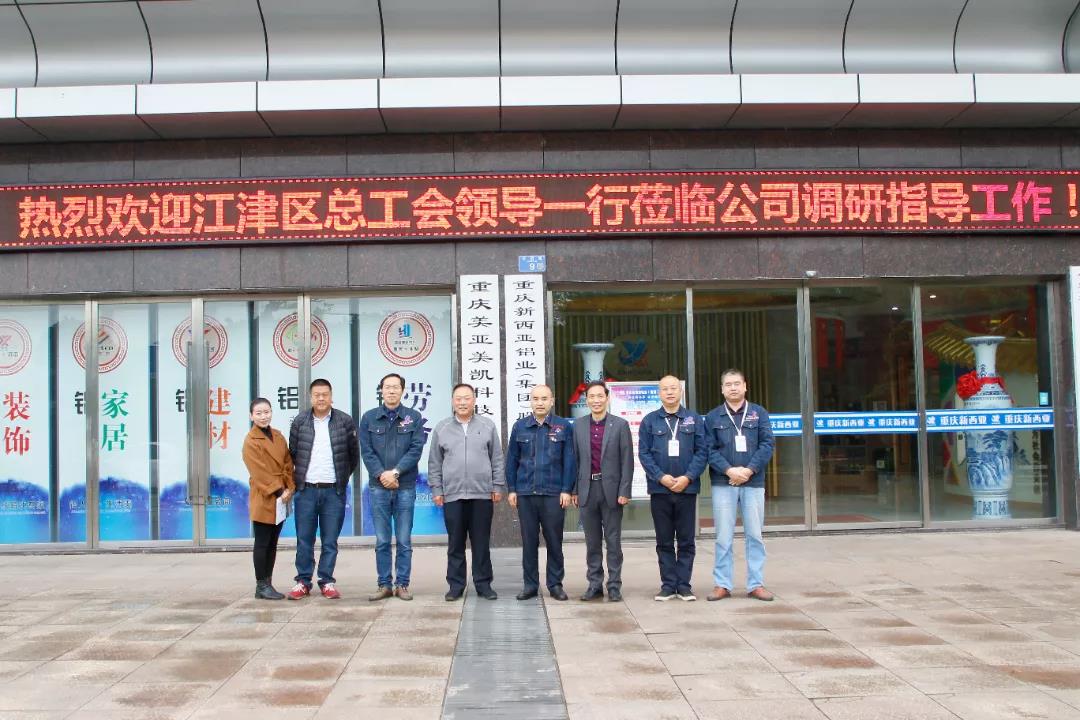 江津區(qū)總工會基層工作部部長楊勇、科員胡婷婷,新西亞鋁業(yè)集團鋁裝飾事業(yè)部執(zhí)行總經(jīng)理周雄、鋁家居事業(yè)部執(zhí)行總經(jīng)理王凱陪同調(diào)研。