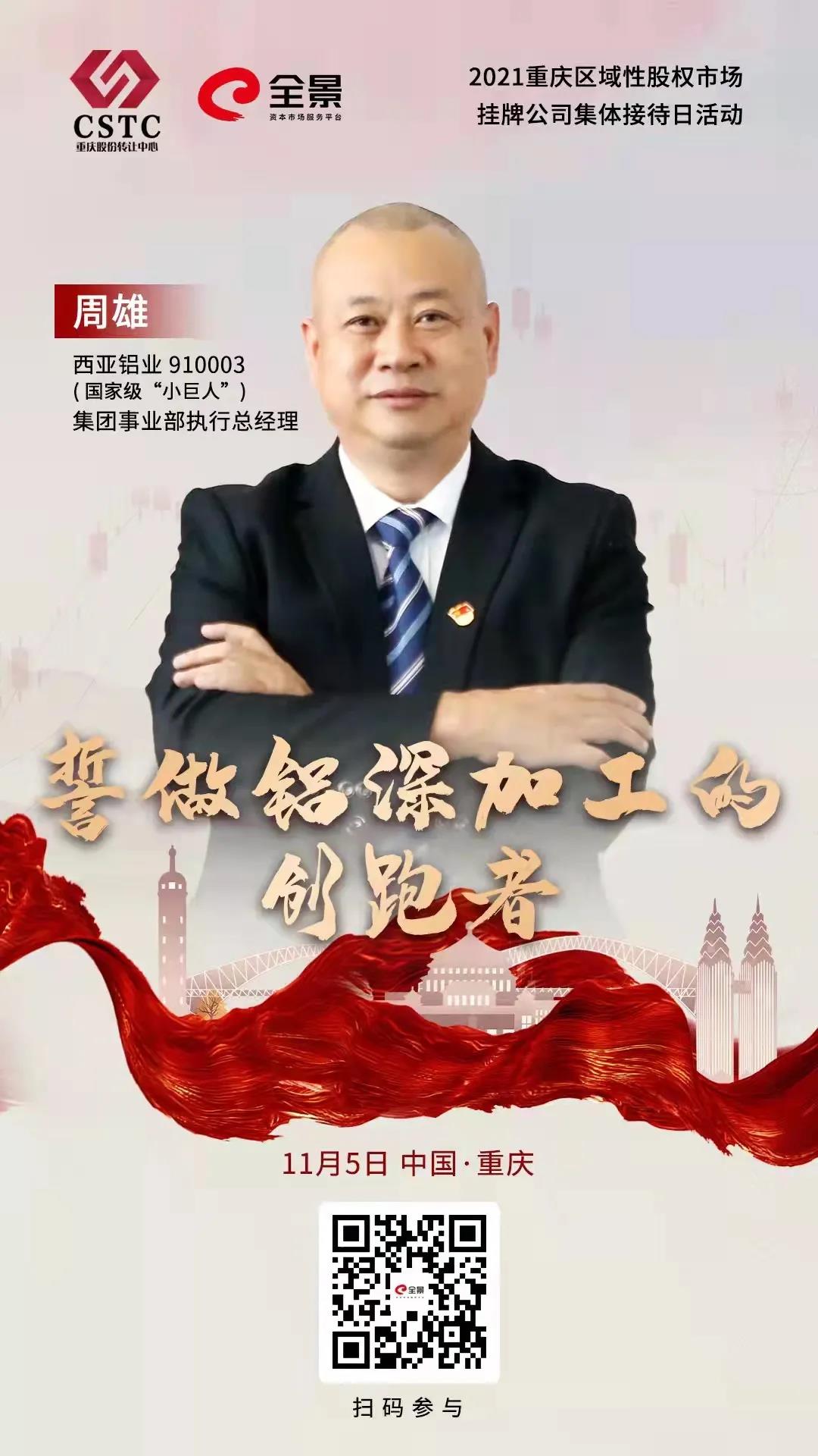 新西亞鋁業(yè)集團(tuán)作為國(guó)家級(jí)“小巨人”和重慶市級(jí)“專(zhuān)精特新”企業(yè),始終把科技創(chuàng)新和經(jīng)營(yíng)模式創(chuàng)新放在企業(yè)發(fā)展的首位,把借力資本市場(chǎng)發(fā)展作為公司的重要戰(zhàn)略。公司將不斷提高發(fā)展質(zhì)量和效益,更好地履行“為客戶(hù)創(chuàng)價(jià)值,為員工謀福利,為社會(huì)作貢獻(xiàn)”的核心價(jià)值觀,真正建成具有一流核心競(jìng)爭(zhēng)力和強(qiáng)烈社會(huì)責(zé)任感的優(yōu)秀企業(yè),為成渝雙城際經(jīng)濟(jì)圈發(fā)展作出新的更大貢獻(xiàn)!