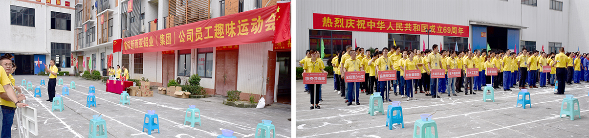 為熱烈慶祝中華人民共和國(guó)成立69周年,進(jìn)一步豐富員工業(yè)余文化生活,重慶新西亞鋁業(yè)(集團(tuán))公司于9月29日下午,在公司籃球場(chǎng)舉辦了一次別開生面的員工趣味運(yùn)動(dòng)會(huì),為全體新西亞家人奉獻(xiàn)了一頓豐富多彩的精神大餐。新西亞家人220人次參加了運(yùn)動(dòng)會(huì)。公司董事長(zhǎng)劉斌及經(jīng)營(yíng)班子成員親臨運(yùn)動(dòng)會(huì)現(xiàn)場(chǎng),與全體家人同臺(tái)競(jìng)技,與民同樂(lè)。
