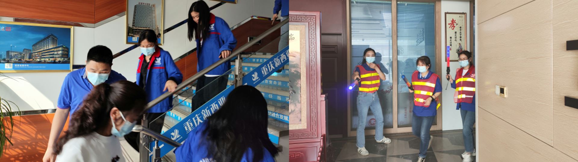 理論培訓結束后,實戰(zhàn)演練正式拉開帷幕。首先進行的是火災疏散逃生演練。隨著一陣急促、刺耳的火災報警聲響起,參演人員迅速反應,在疏散員的引導下手捂口鼻、彎腰低姿,沿著預定的安全通道,快步向樓下安全點撤離。整個過程緊張有序,僅用時1分30秒,高度還原了真實的火災逃生場景,有效檢驗了員工的應急反應能力和自救互救意識。