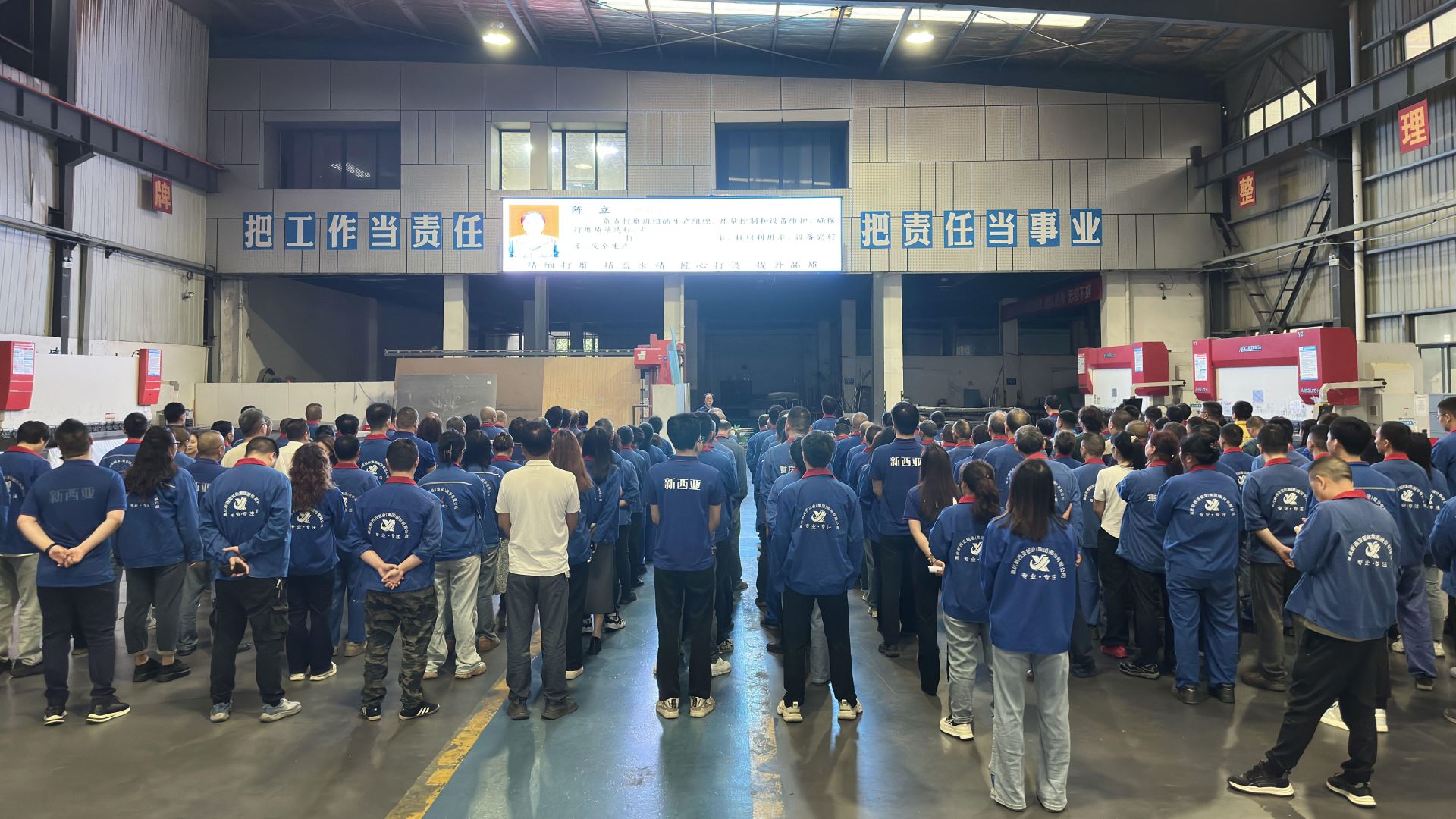 6月2日,雨幕輕籠,卻遮不住新西亞人奮進(jìn)的腳步。8點整,新西亞鈑金生產(chǎn)車間內(nèi),六月員工大會如期舉行,鋁科技事業(yè)部負(fù)責(zé)人傅明華主持會議。
