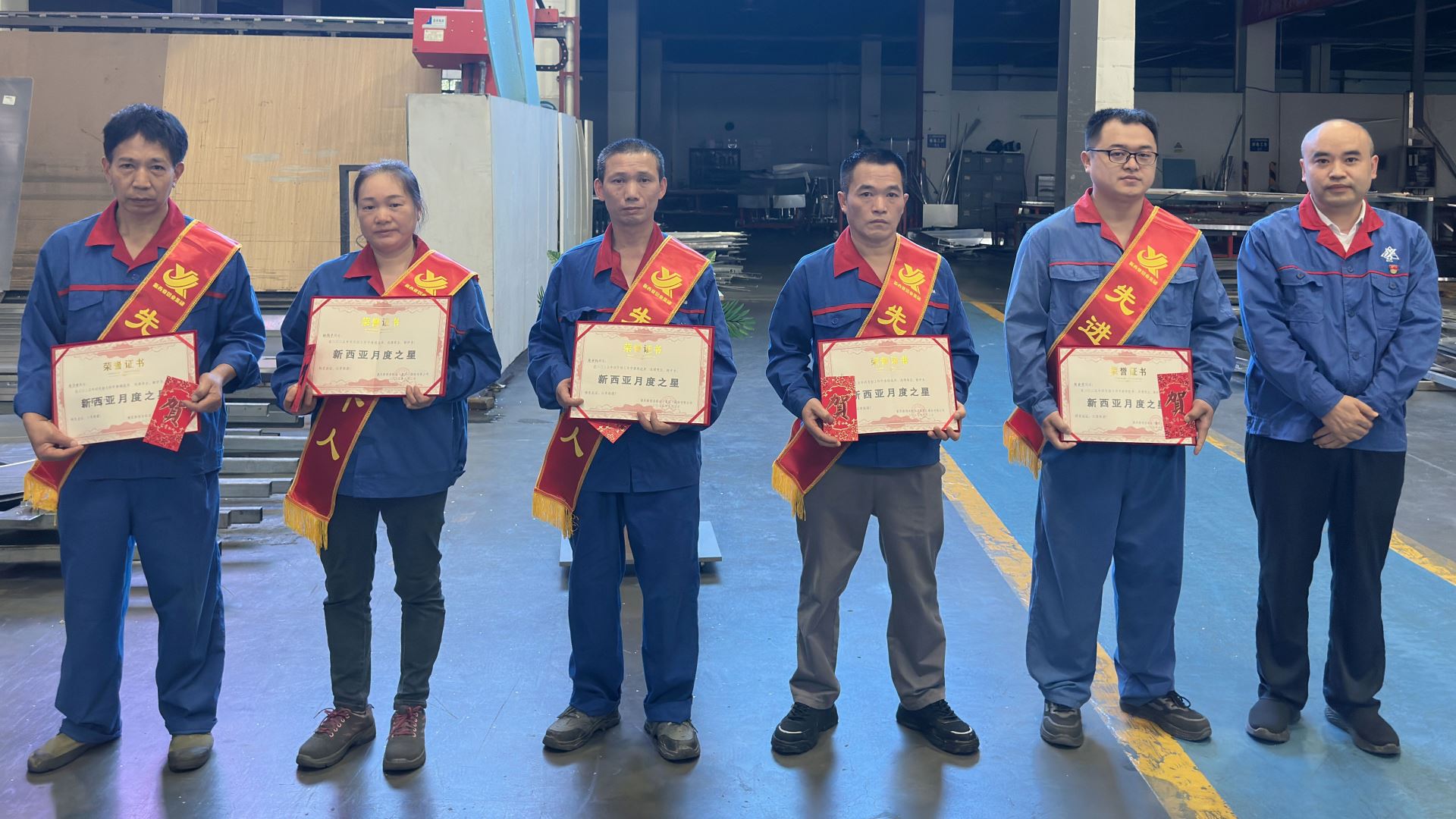 表彰環(huán)節(jié),4月份“新西亞之星”名單正式公布。鈑金車間折彎工張金榮、裝配工楊德平、打磨工蔣世權(quán),噴涂車間前處理工代珍友,運營保障部勤雜工周澤榮等五位來自基層一線的員工代表,憑借精湛的技藝、高度的責(zé)任心和敬業(yè)精神,在平凡的崗位上做出了不平凡的業(yè)績,以自己的實際行動詮釋了“新西亞精神”內(nèi)涵。黨支部書記、總經(jīng)理劉斌為他們頒發(fā)榮譽證書和獎金,并對他們的辛勤付出表示充分肯定和衷心感謝。