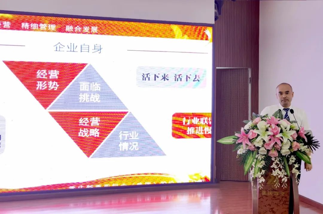 集團公司總經(jīng)理劉斌從企業(yè)戰(zhàn)略發(fā)展高度,深刻剖析了企業(yè)經(jīng)營環(huán)境所面對的諸多不確定因素,企業(yè)生產(chǎn)經(jīng)營面臨前所未有的困難和挑戰(zhàn)。審時度勢提出了“把握趨勢、苦心經(jīng)營、精細管理、融合發(fā)展”的集團公司下半年工作思路。劉總經(jīng)理殷切地告誡全體新西亞家人,必須保持“在崗一分鐘,奮戰(zhàn)60秒”的奮斗精神,凝心聚力“活下來”;必須發(fā)揚新西亞員工特別能吃苦,特別能戰(zhàn)斗的奉獻精神,改革創(chuàng)新“活下去”。在裂變中重生、在奮斗中成長、在感恩中收獲、在成長中快樂。