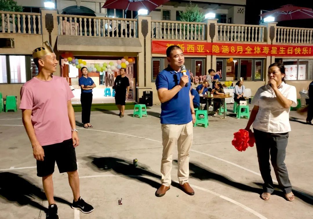 生日活動現(xiàn)場,新西亞鋁業(yè)集團總經(jīng)理劉斌、隱涵食品總經(jīng)理劉安梨兩位大家長分別對過生日的家人送上美好的祝福及良好的祝愿!兩位劉總表示:通過兩家企業(yè)融合發(fā)展、聯(lián)盟的勢頭,結(jié)合集體生日活動會以及其他聯(lián)誼活動的開展,表達公司對員工的關(guān)懷,拉近彼此間的距離,增進友誼,促進團結(jié)發(fā)展,給員工們帶來家的溫馨和感受。也為了兩家企業(yè)的文化共建共享、品牌嫁接融合、資源共享方面拉近雙方合作的高度與深度。