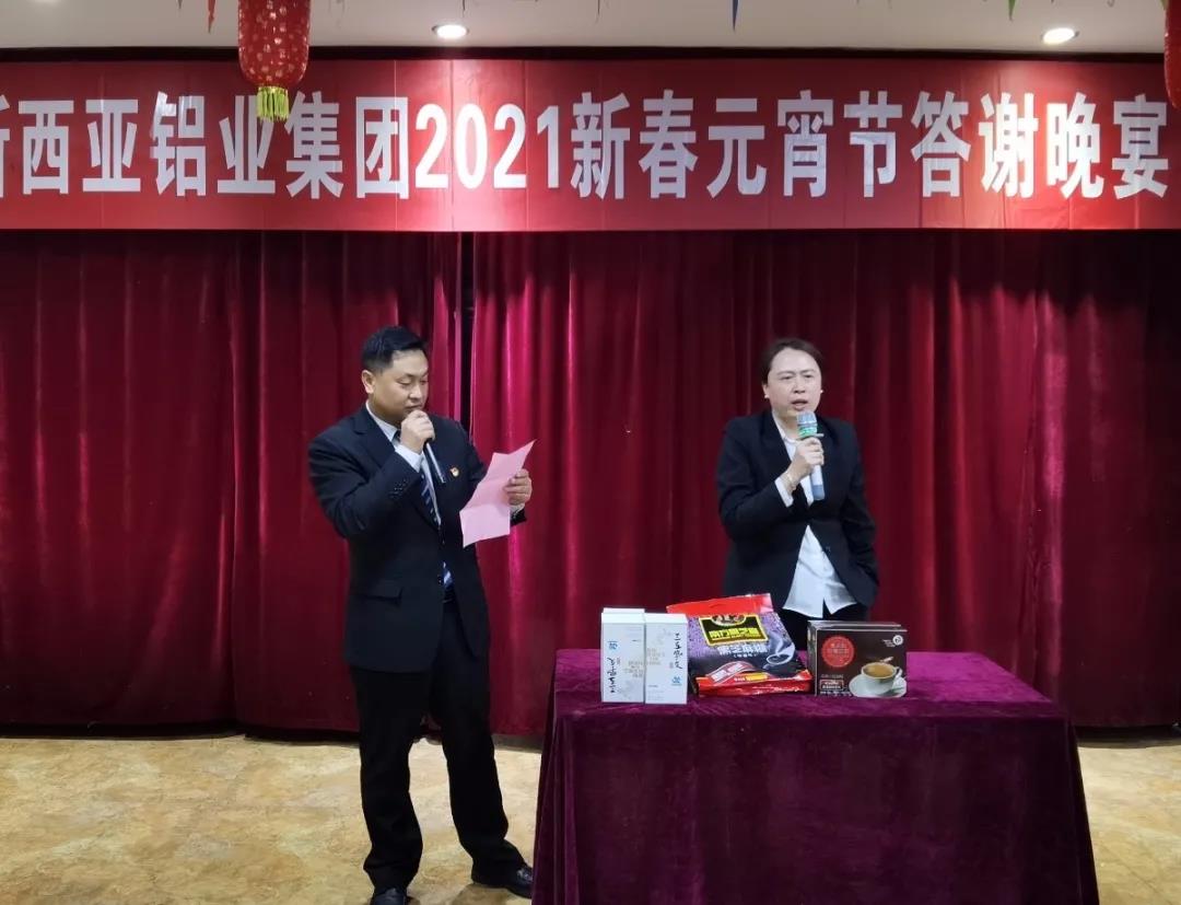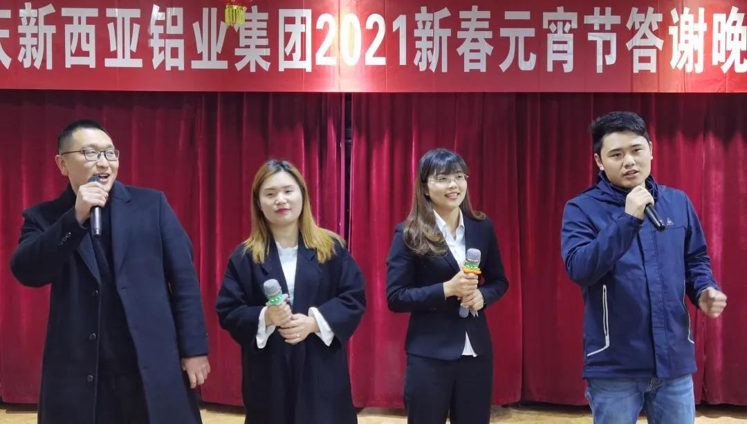 銀鼠辭舊歲,金牛踏春來。2月26日晚,新西亞鋁業(yè)集團(tuán)在公司食堂大廳開展了以“歡天喜地過大年、歡歌笑語鬧元宵”為主題的2021新春元宵佳節(jié)答謝晚宴。集團(tuán)公司全體股東、領(lǐng)導(dǎo)班子、全體新西亞員工230余人齊聚一堂,共享晚宴帶來的新春祝福和歡樂。晚宴由鋁裝飾事業(yè)部市場(chǎng)開發(fā)部經(jīng)理唐春主持。